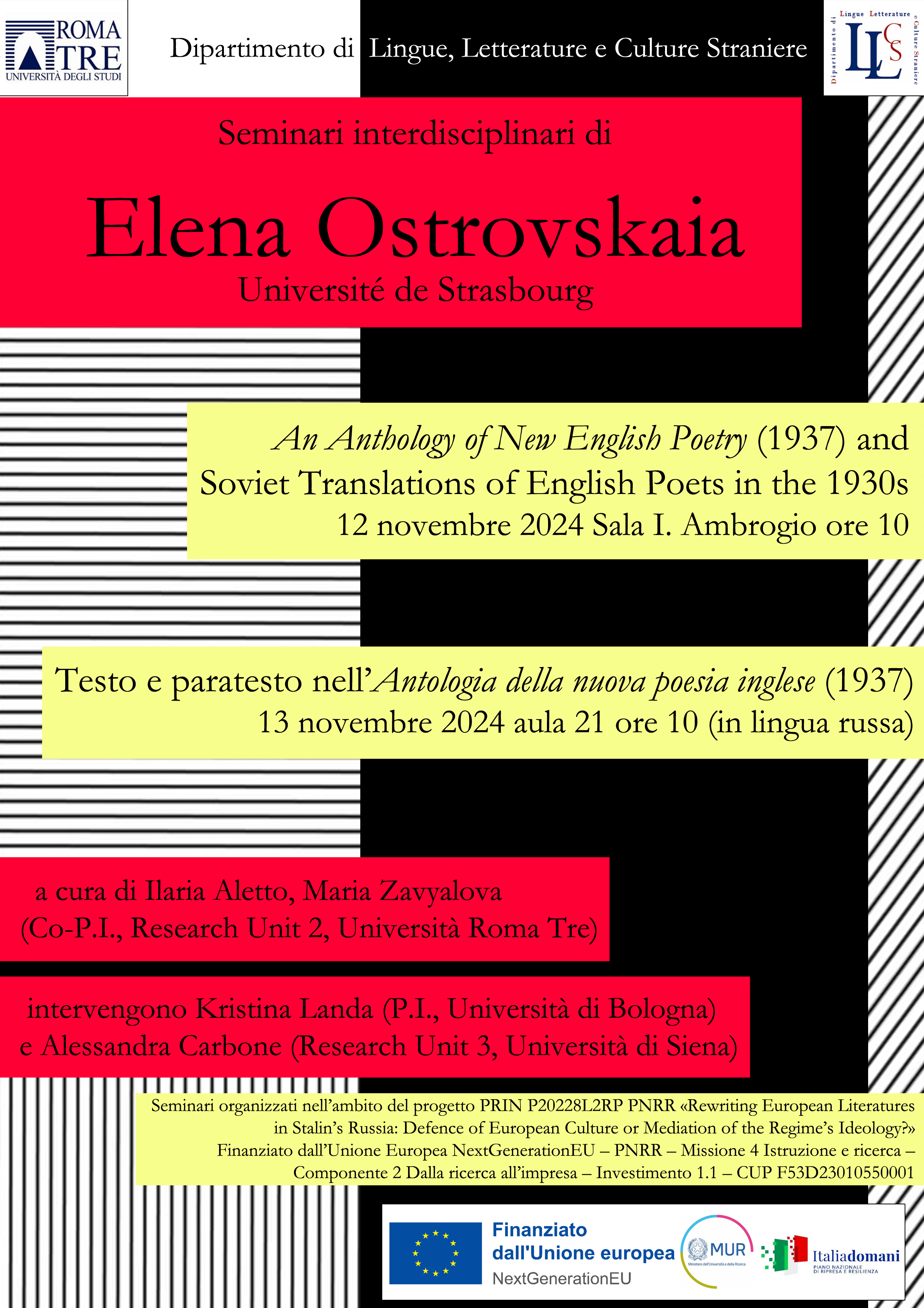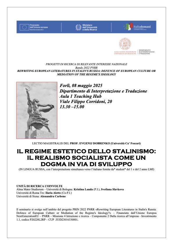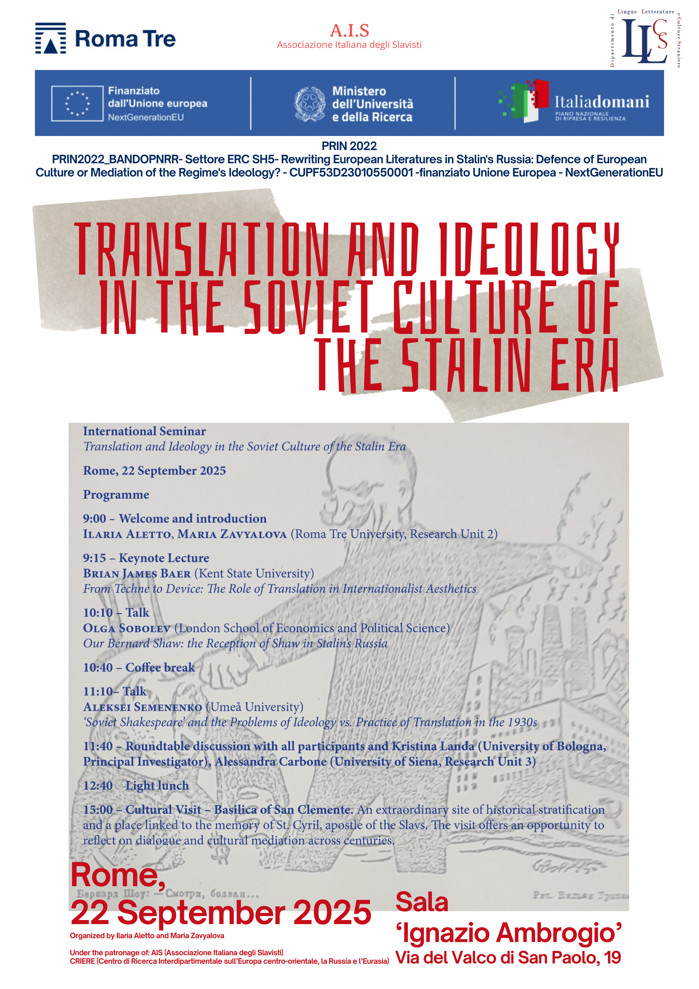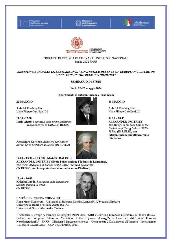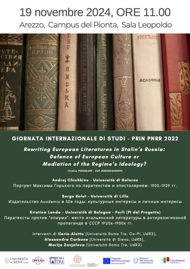 International Study Day – PRIN PNRR 2022 “Rewriting European Literatures in Stalin’s Russia: Defence of European Culture or Mediation of the Regime’s Ideology?”