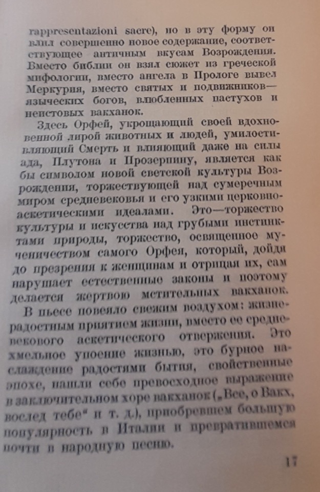 Titolo dell'opera originale tradotta in russo: La Fabula di Orfeo