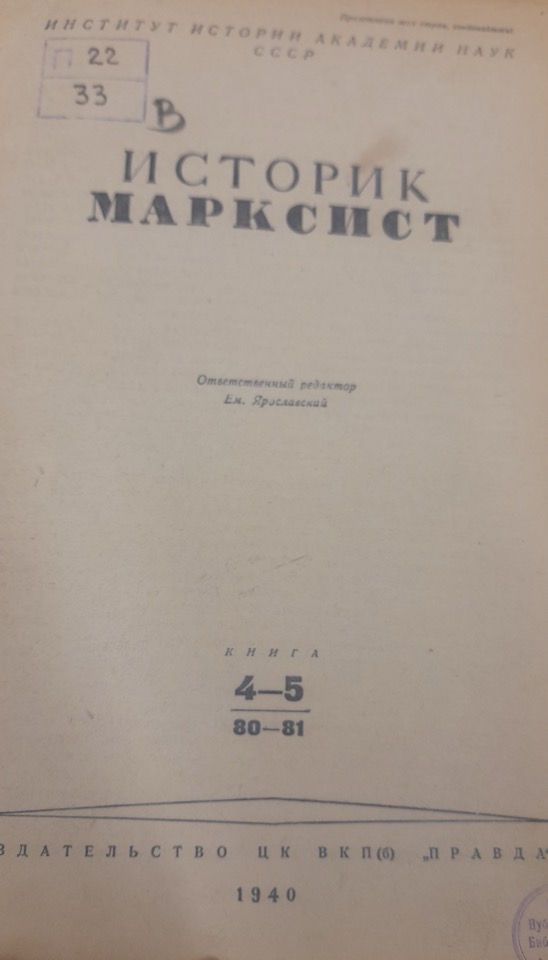 Collocazione paratesto: "Istorik-marksist" [rivista], 4-5 (80-81)- pp. 147-149