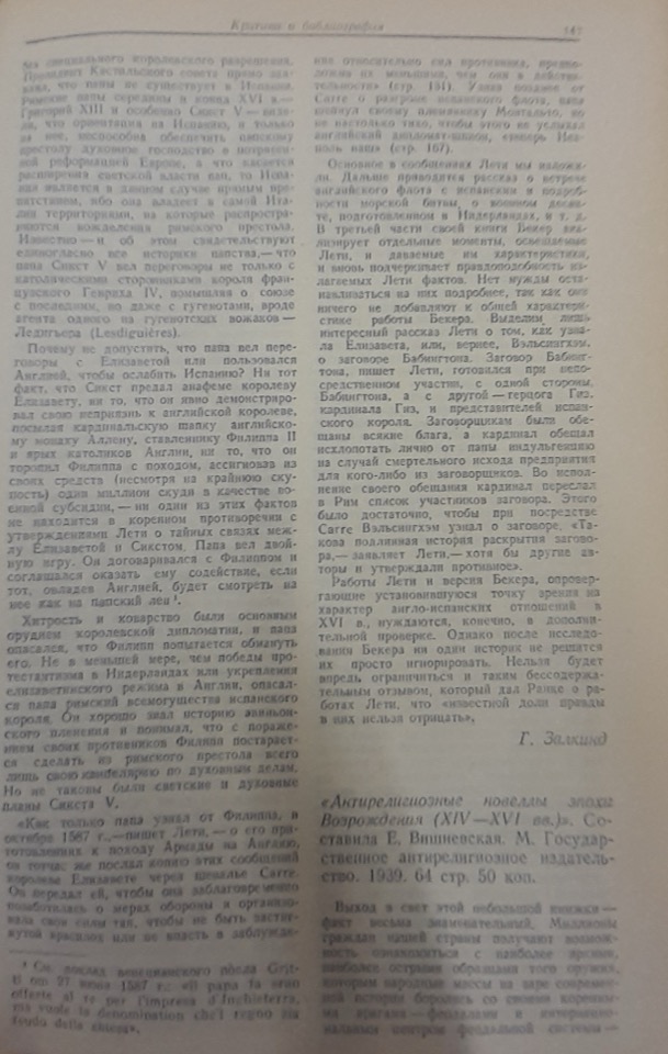 Antireligioznye novelly èpochi Vozroždenija (XIV-XVI vv.). Sostavila E. Višnevskaja. M. Gosudarstvennoe Antireligioznoe izdatel’stvo. 1939. 64 str. 50 kop. [P070]
