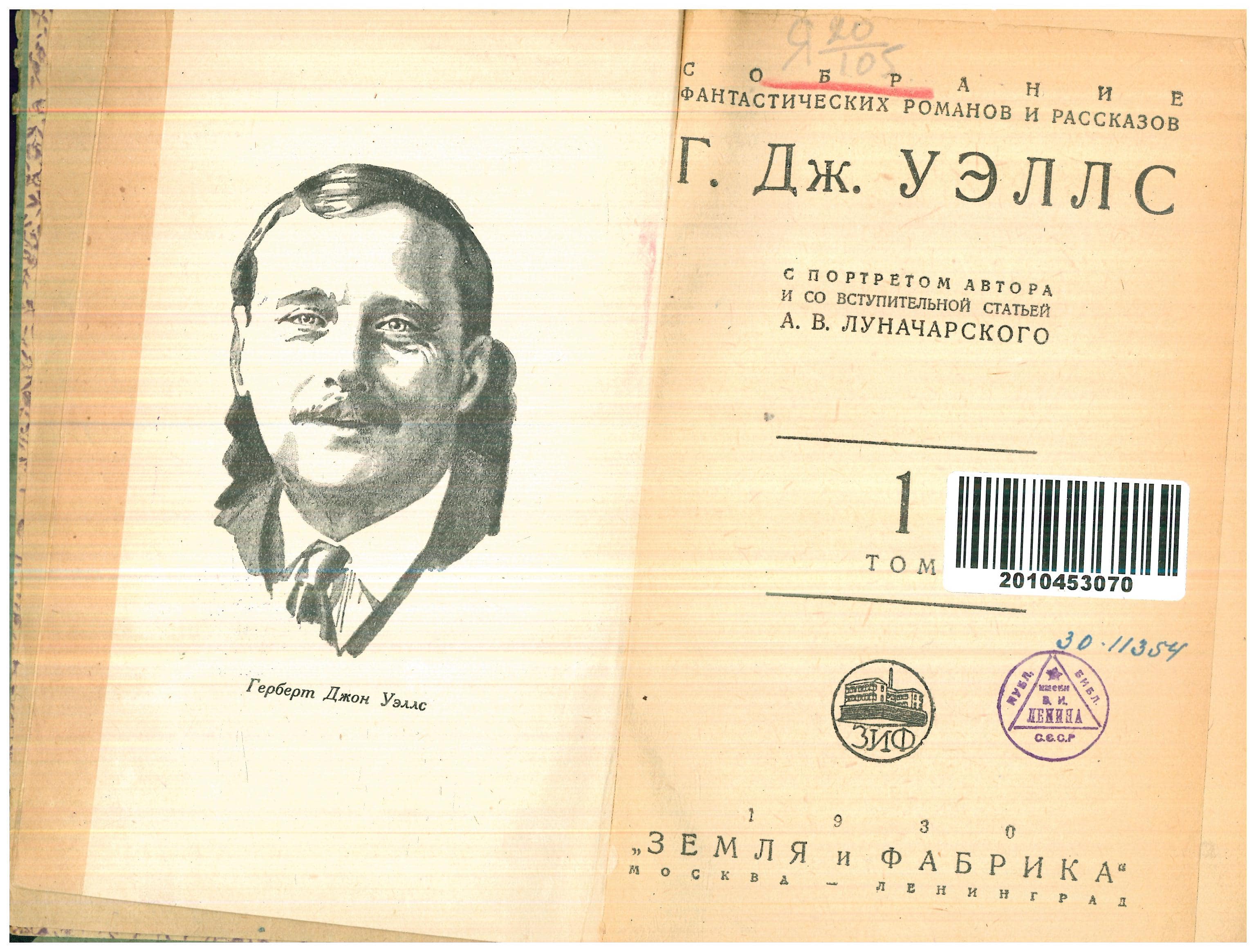 Collocazione paratesto: Sobranie fantastičeskich romanov i rasskazov G. Dž. Uellsa v šesti tomach, t. 1 – Moskva, Leningrad – Zemlja i fabrika – pp. III-IX