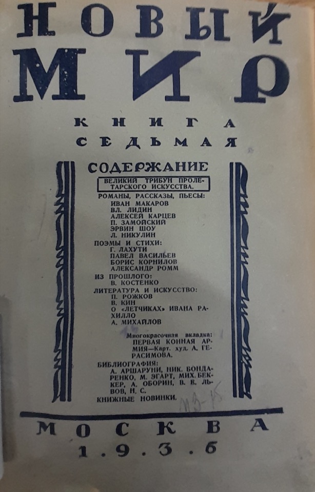 Collocazione paratesto: "Novyj mir" [rivista], 7 - pp. 284-285