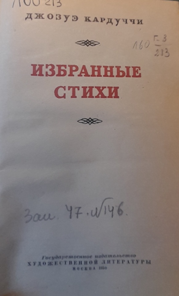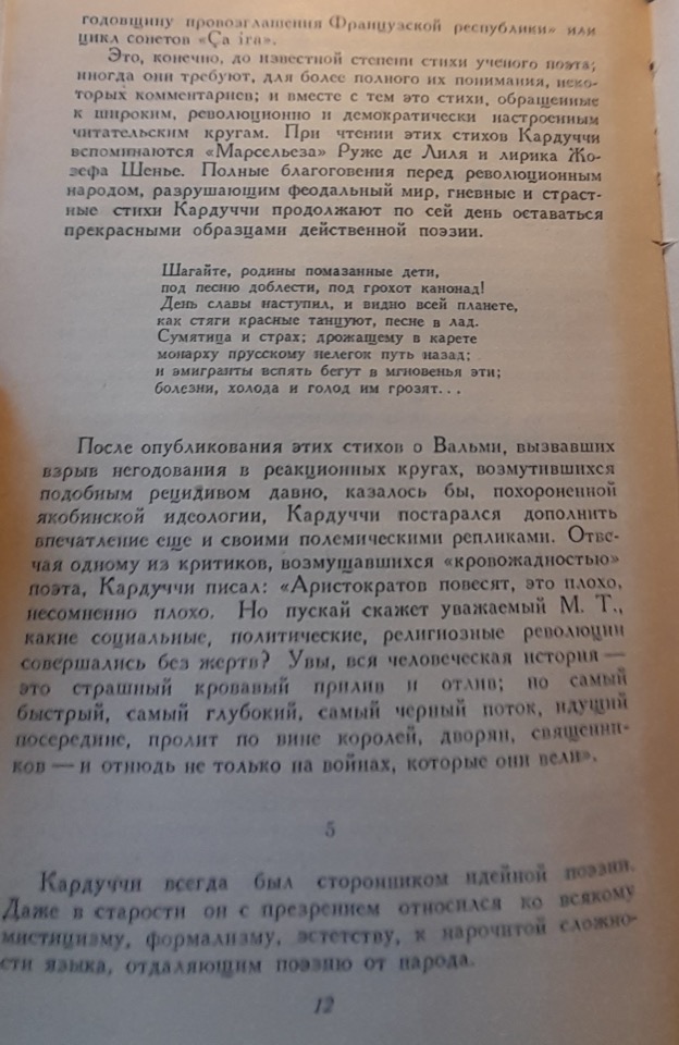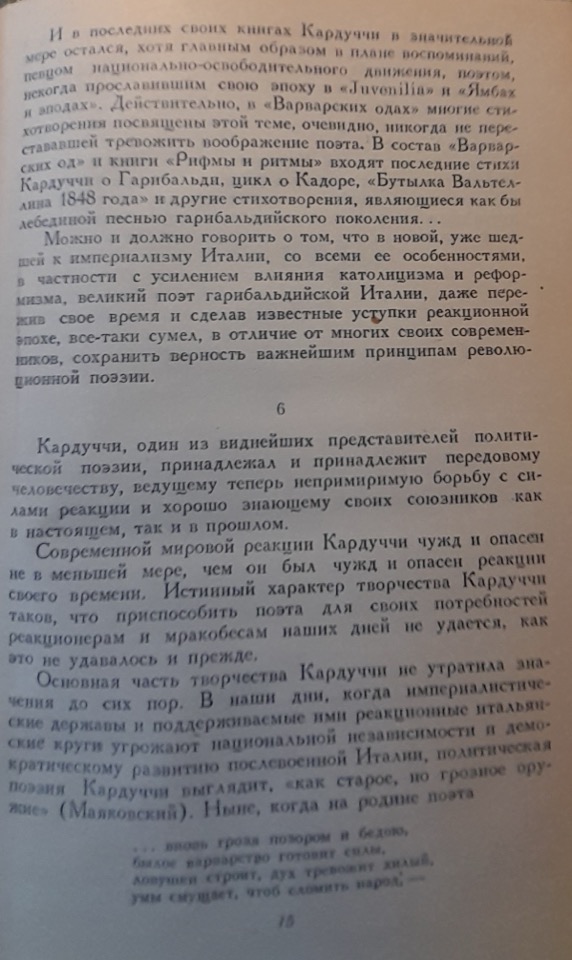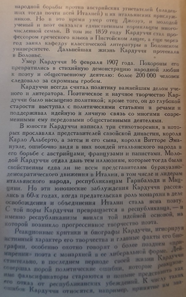 La poesia di Carducci fa parte del retaggio culturale dell’umanità progressista; pertanto, le sue opere più belle devono entrare a far parte del patrimonio del multinazionale popolo sovietico.