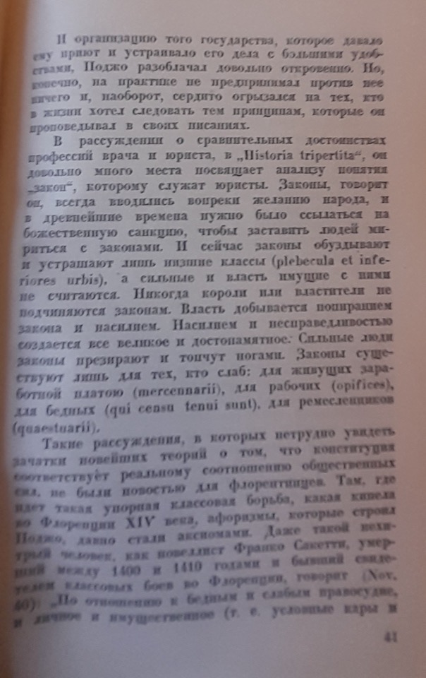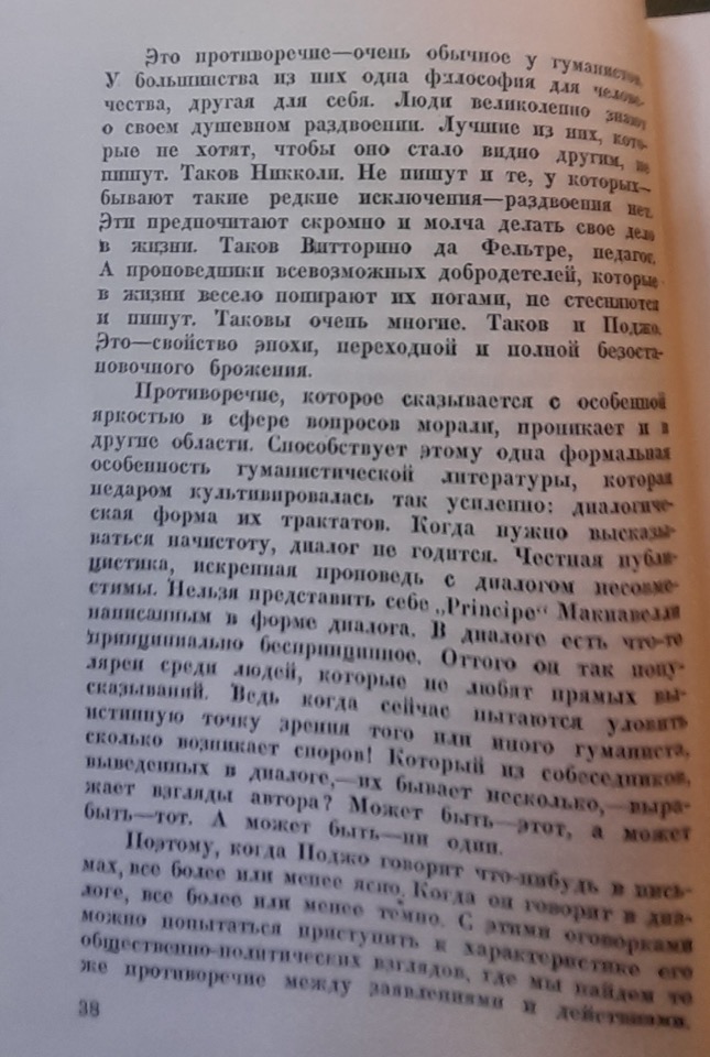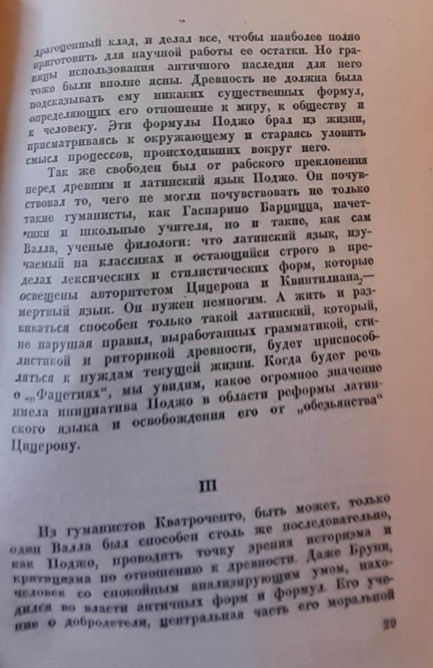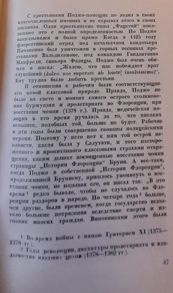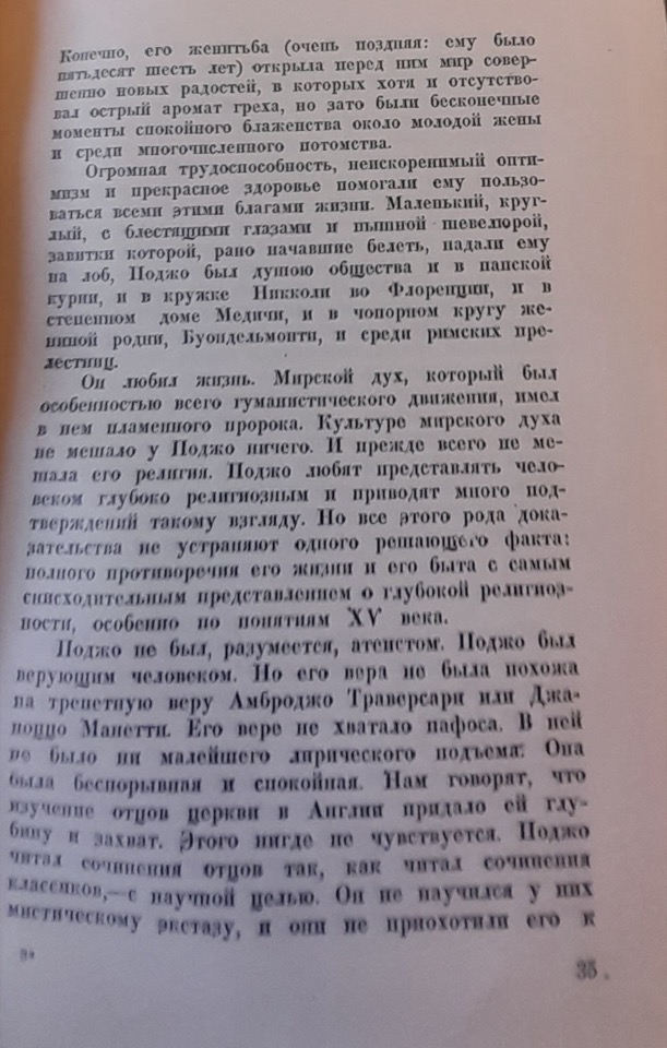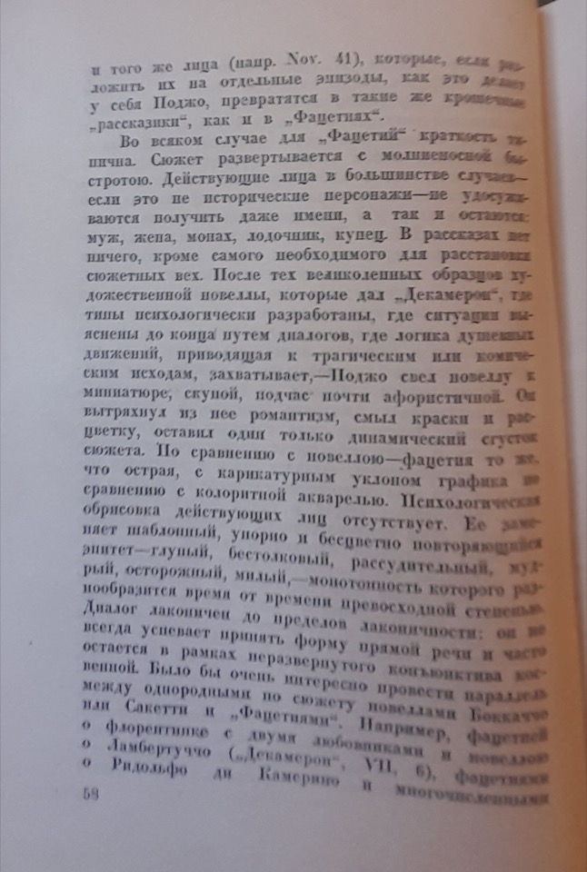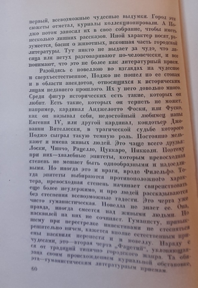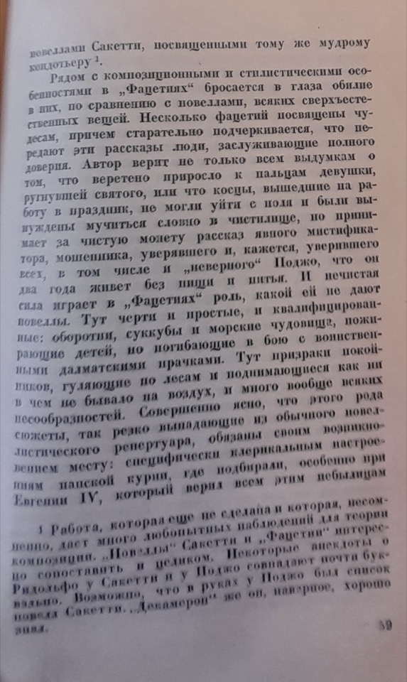 L’introduzione di Dživelegov è preceduta da una nota del traduttore in cui viene specificato che, prima della rivoluzione d’Ottobre, la censura zarista proibiva la pubblicazione delle Facetiae con la scusa dell’indecenza dei suoi “racconti”; tuttavia, secondo Dživelegov, la vera causa del divieto non fu solo la consueta tendenza antiecclesiastica tipica di molti umanisti e novellisti, ma anche quella antireligiosa. Egli nota inoltre che le “miniature blasfeme” di B. venivano “lanciate” dall’autore direttamente dalla Santa Sede, ossia dal centro della religiosità occidentale; tali miniature diventano ora per la prima volta accessibili al pubblico sovietico e sono senz’altro destinate a entrare a far parte della corrente ideologica dell’attualità sovietica.