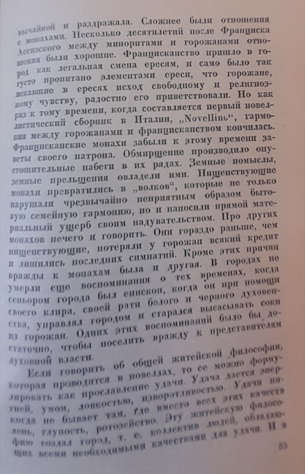 Il nome stesso di B., sostiene Dživelegov, divenne per i rappresentanti della reazione cattolica, persino all’estero, sinonimo di empietà. A questo proposito, nella nota Dživelegov aggiunge che nel 1549, durante le guerre religiose in Europa, un monaco francese accusava, tra gli altri, gli autori italiani Boccaccio, Bracciolini e Poliziano di voler restaurare il paganesimo.