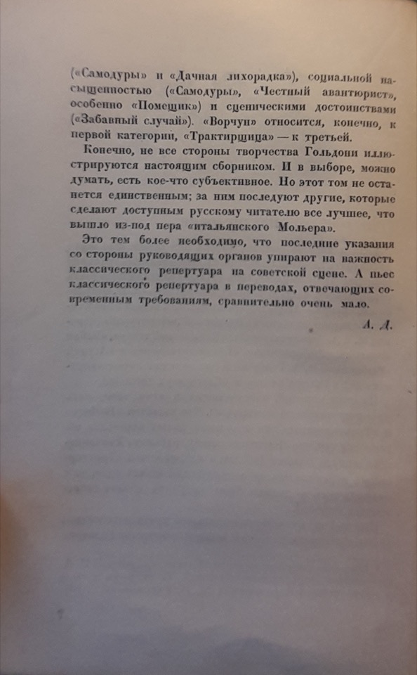Questa scelta si rivela tanto più necessaria in quanto è noto che le recenti direttive degli organi governativi insistono sull’importanza di accogliere il repertorio classico sul palcoscenico sovietico; tuttavia, il numero di drammi del repertorio classico tradotti secondo i principi della traduzione moderna risulta ancora limitato.