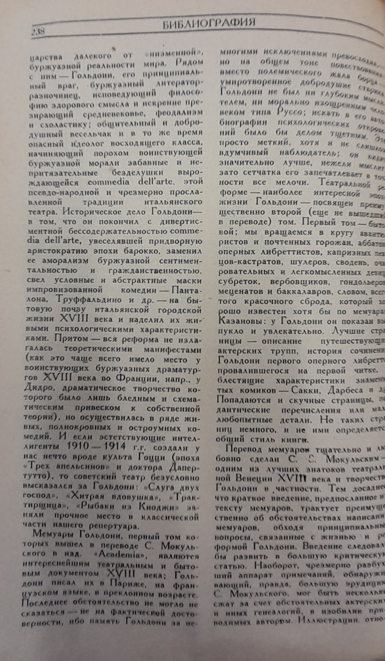 Memuary Karlo Gol’doni. Soderžanie – istorija ego žizni i ego teatra, t. I. Perevod, vvedenie i primečanija S.S. Mokul’skogo. “Academia”, 1930 g. [P017]