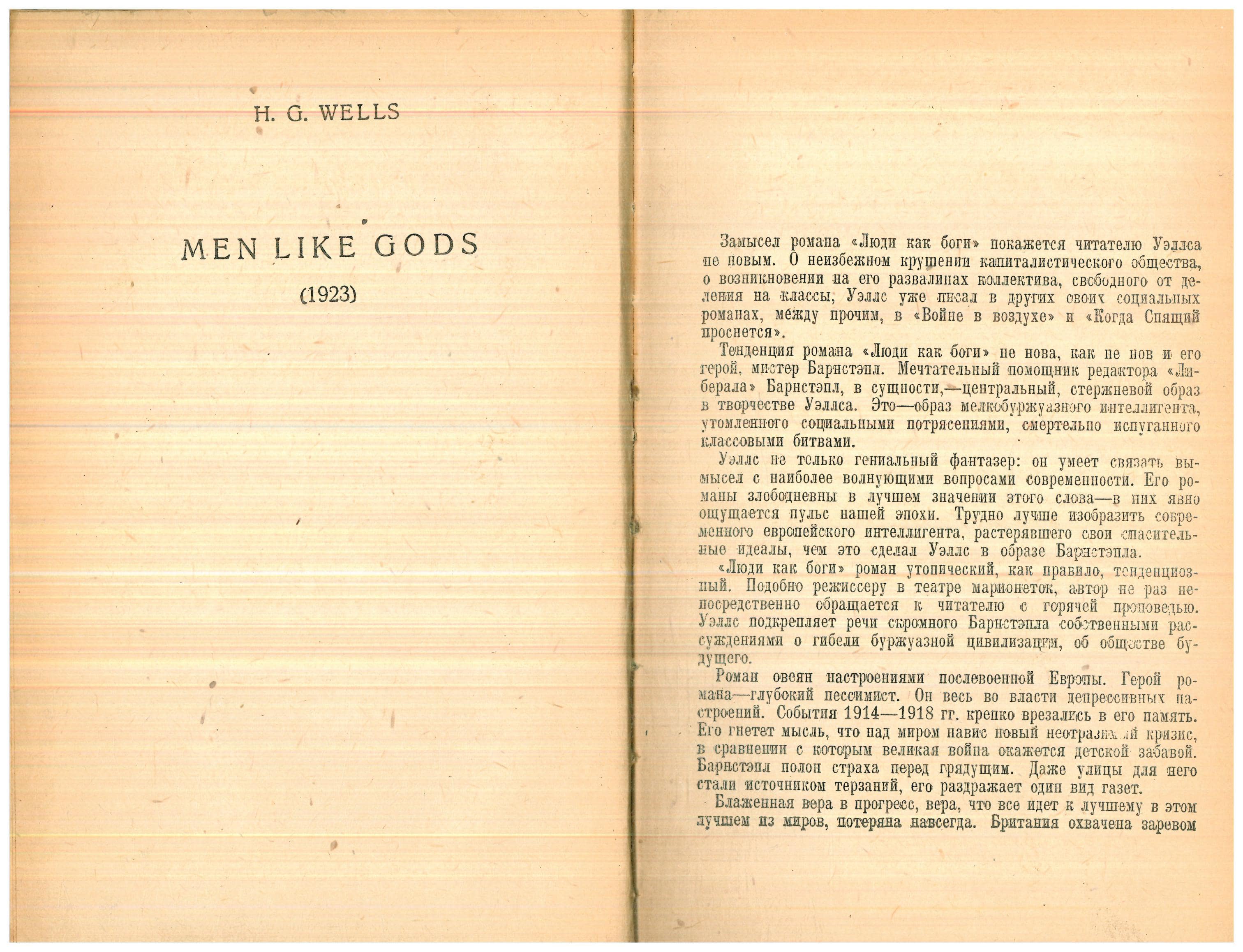 Title of the original work translated into Russian: Men Like Gods