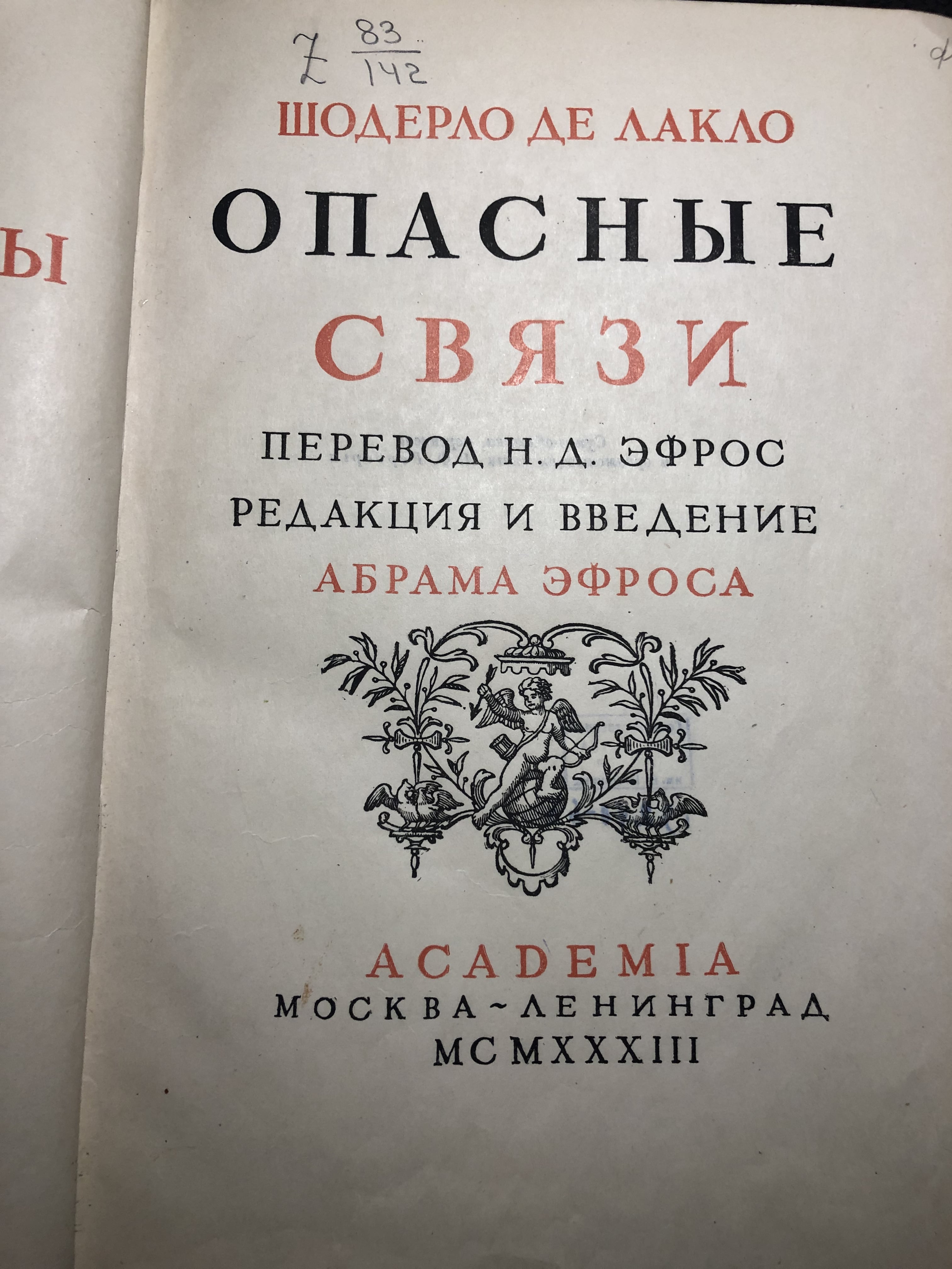 Title of the original work translated into Russian: Les liaisons dangereuses